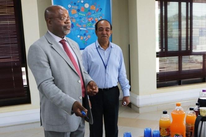 Entebbe, UGANDA (May 10, 2018) - Regional Service Centre Entebbe Chief Paulin Djomo, with Service Line Manager Agha Shaheen Khan, prepare to cut celebratory cake during the official re-launch of the Claims Service Line. Under…