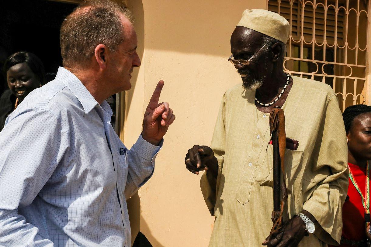 David Shearer chats with an elder in Gogrial