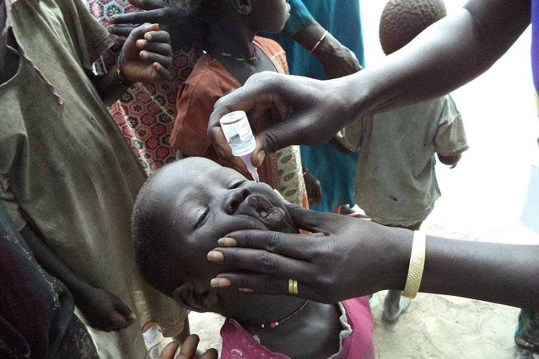 A child in Bentiu being vaccinated against polio during a campaign by local authorities with support from UNICEF and WHO.