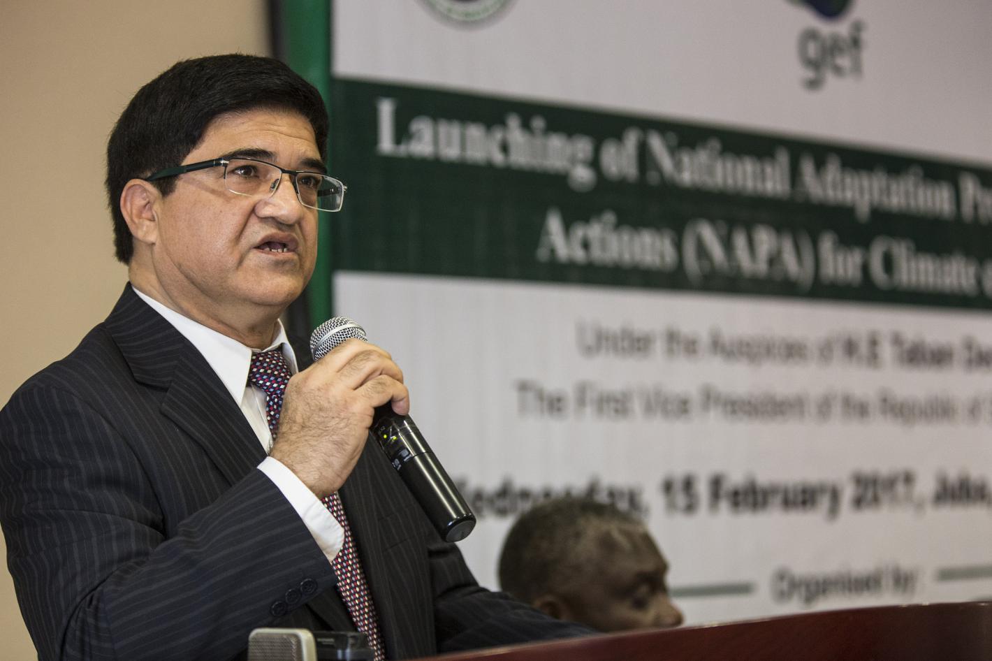 Arshad Khan, the Country Programme Manager of the United Nations Environmental Programme (UNEP), speaking at the launch of South Sudan's National Adaption Programme of Action (NAPA) with regards to the effects of climate change.