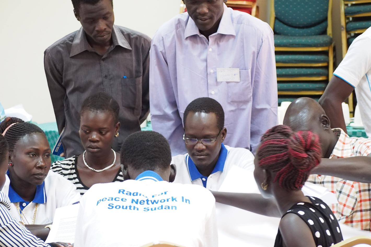 A few of the 51 radio journalists from around the country who participated in UNESCO's training on conflict-sensitive reporting.