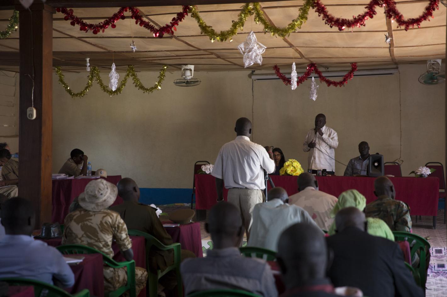 UNMISS Civil Affairs Division holding a workshop in Yei, aiming to improve poor relations and persistent distrust between military and civilians in the area.
