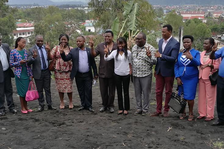 Participants of the Great Lakes youth forum standing on the site offered by the DR Congo authorities for the construction of the youth center, Goma, eastern DRC, 29 November 2016.