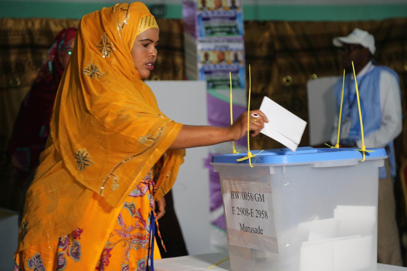 A delegate casts her vote during the electoral process to choose members of the Lower House of the Somali federal Parliament in Baidoa, Somalia on November 23, 2016.