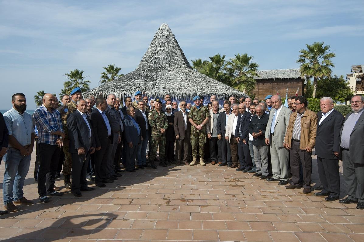 Some 60 dignitaries from south-western Lebanon pose for a group photo with the UNIFIL Head of Mission and Force Commander, Major General Michael Beary.