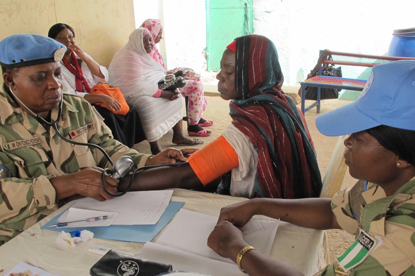 UNAMID peacekeepers with a pacient at Nyala prison. Photo by Kone Mouroulaye, UNAMID.