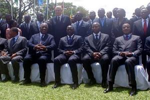Kinshasa, 19 December 2010 - MONUSCO Western Brigade Commander, Brig Gl Martin Owusu-Ababio, distributed 70 soccer balls to team site leaders who gathered in a symbolic ceremony in Kinshasa on 19 December to promote peace and…