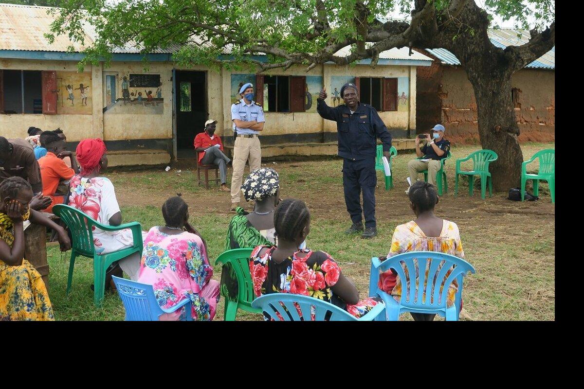 Following a spate of child abductions, UNPOL and the South Sudan Police Service in Torit, Eastern Equatoria, are sensitizing Police Community Relations Committees here on reporting any suspicious activity in their neighbourhoods promptly to local authorities to keep their children safe from harm. Photo by Okello James/UNMISS.