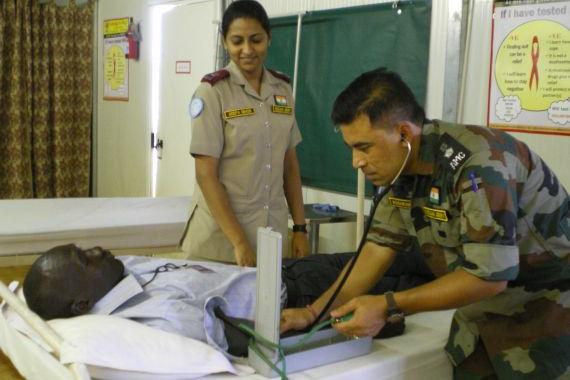 A member of the Indian Battalion checks a patient's blood pressure in the UNMISS hospital in Malakal, Upper Nile State. This year,the World Health Organization and partners are focusing on the global problem of high blood…