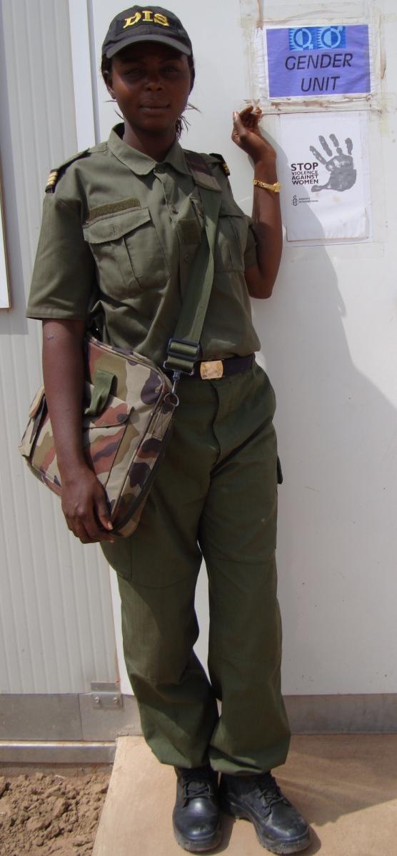appel aux textes. On dit que la femme reste femme mais dans les missions je crois que les femmes accomplissent leurs tâches, leur devoir avec beaucoup plus de facilité que les hommes. Comme la mission du DIS est d'assurer d'abord la sécurité des réfugiés, des personnes déplacées, des personnes vulnérables, des vieillards et des enfants, je pense que ce travail incombe davantage aux femmes surtout dans les cas de violence sexuelle parce qu'il est plus facile pour une femme de se confier à une autre femme ».
