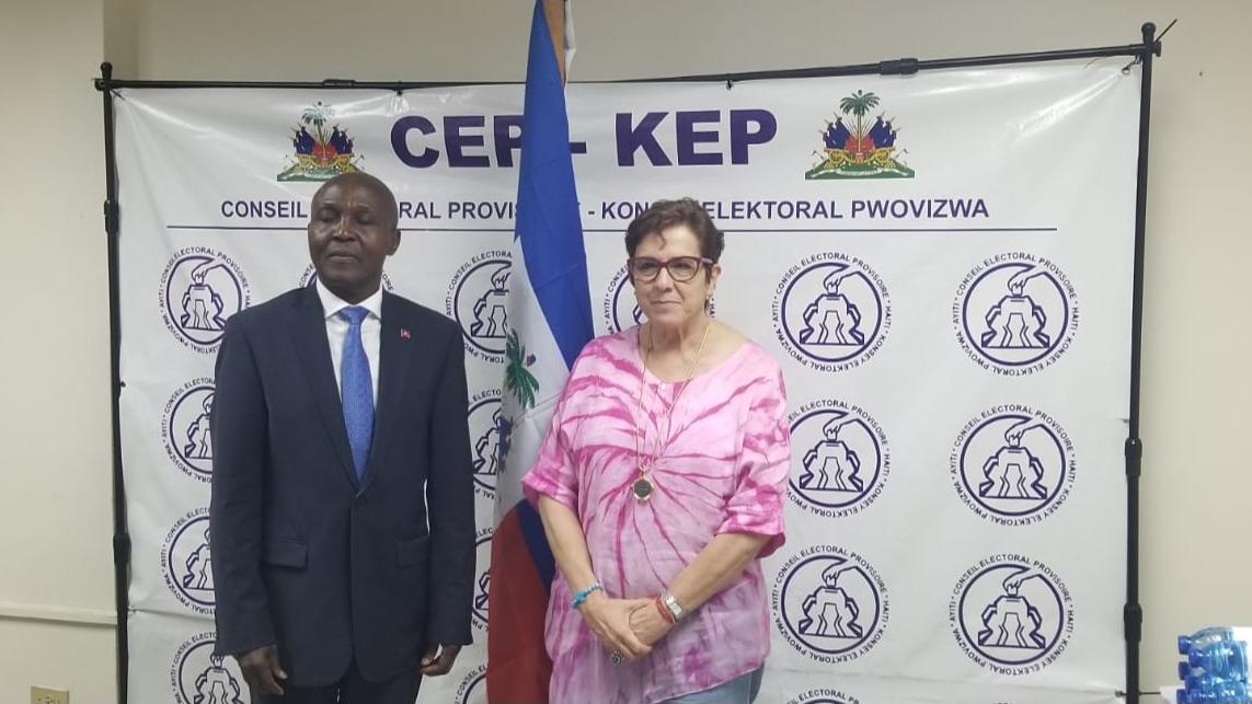 Dans le cadre du suivi du processus électoral en Haïti, la Représentante spéciale du Secrétaire général des Nations Unies (RSSG), María Isabel Salvador, s’est rendue au Conseil Électoral Provisoire (CEP) le 3 mars 2025. Lors de sa rencontre avec le Président du CEP, Patrick Saint-Hilaire, elle a fait le point sur l’avancement des préparatifs et les défis à surmonter en vue du référendum à venir.